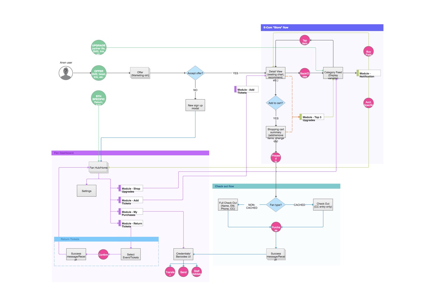 We redesigned a fragmented suite of ticketing and eCommerce mobile web products into an elegant feature-packed product that supported 400+ live event properties and address primary business concerns around first impressions and onboarding.
