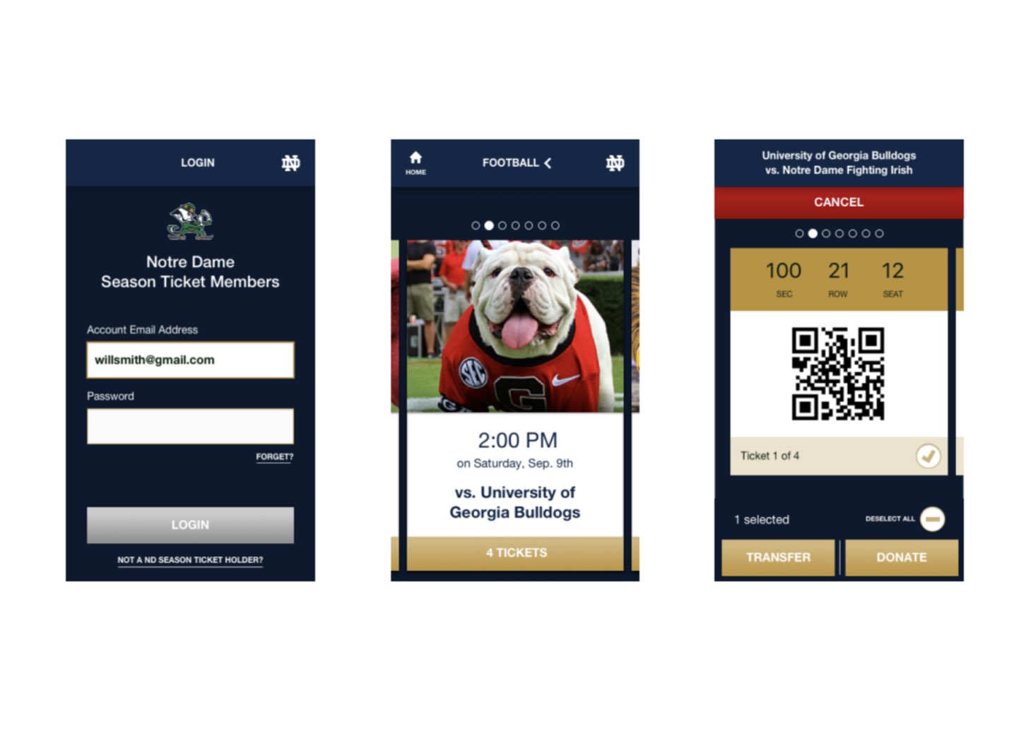 We designed brand new iOS and Android apps, tailored for Notre Dame Football season ticket holders, making it easier than ever to scan into the game or share tickets. As head of design on this project I led and executed every aspect of the end-to-end design process. I managed the client relationship and worked in tandem with a product manager (Davis Lukens) and 4 engineers (Aaron Rosenbaum, Kevin McBrayer, Dharmesh Patel, and Chris Singer) from expapp.com.